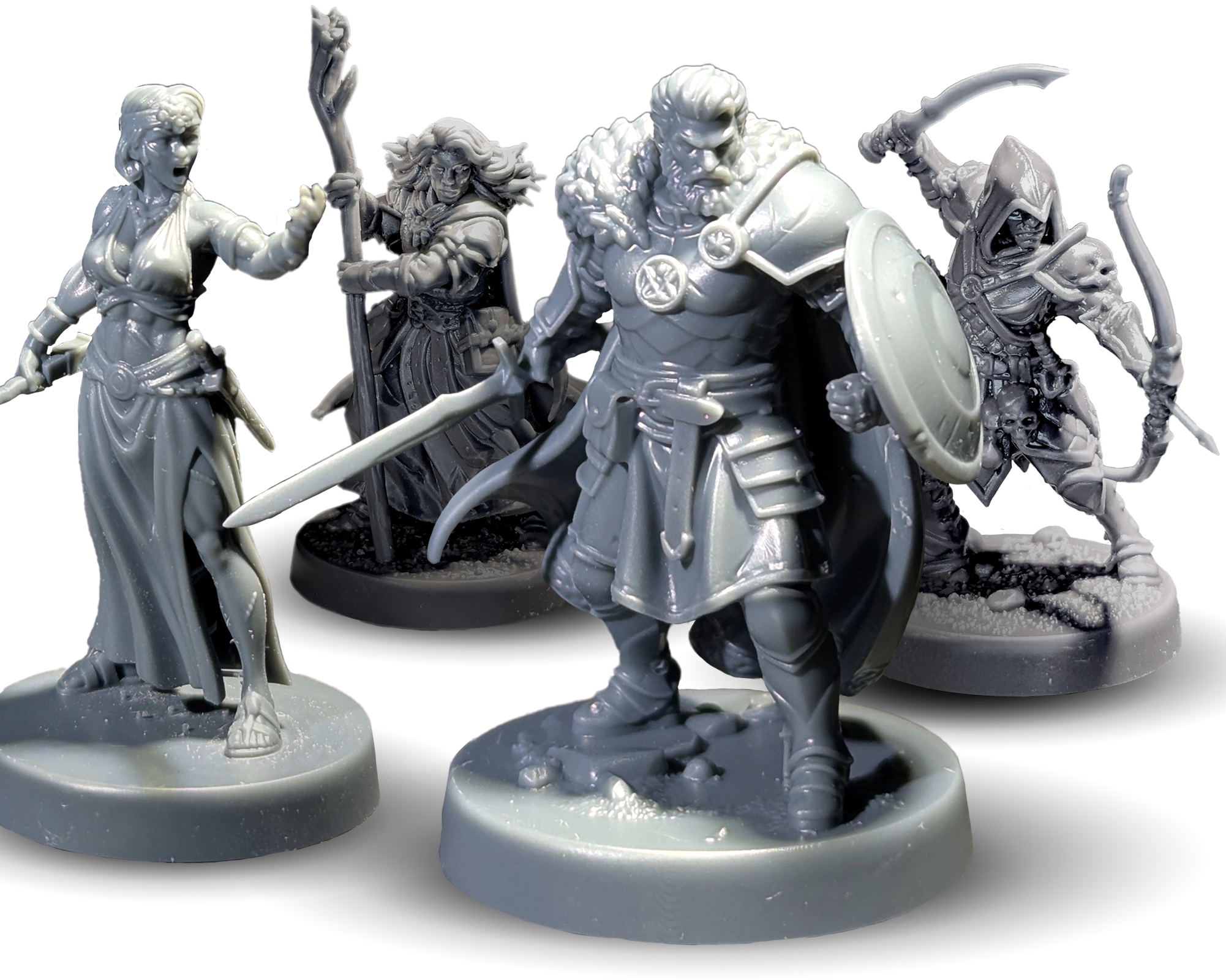We print in high-detail resin with tabletop-ready results. Standard scale is 32mm; other options may appear as we expand production.